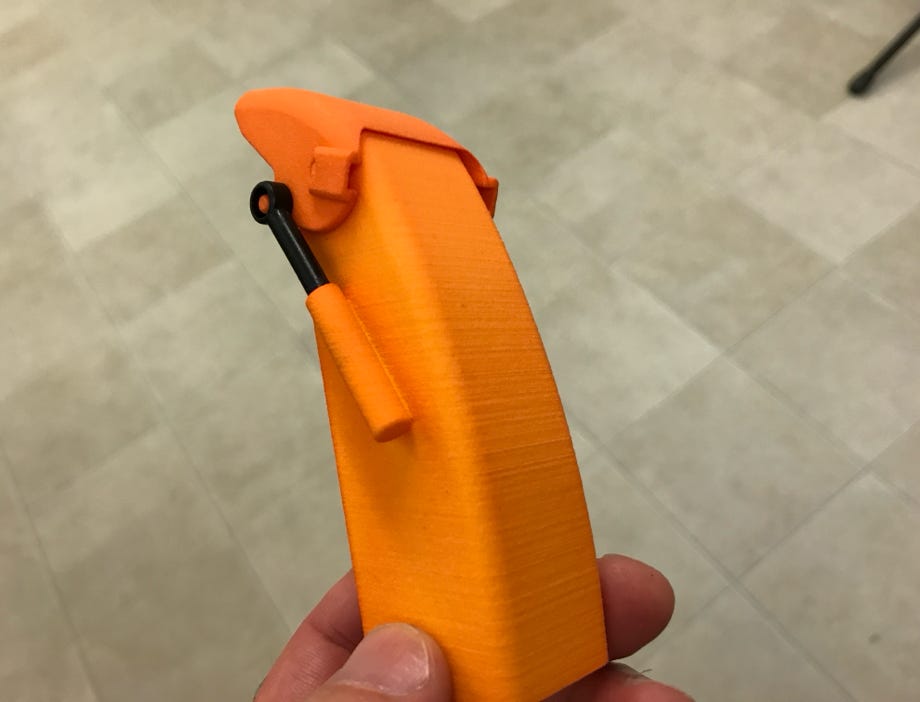 Der Empfehlung von Klaus Bergdolt folgend habe ich den Kamin auf 25 mm erweitert, um späteres Verstopfen zu vermeiden. Für den Bausatz ist der erweiterte Kamin als Druckteil erhältlich. Zur händischen Wurfweitenverstellung kann das schwarze Teil des Originalkamins verwendet werden, oder man kann dies ferngesteuert über ein Servo machen. Dafür sind unterschiedliche Druckteile verfügbar.