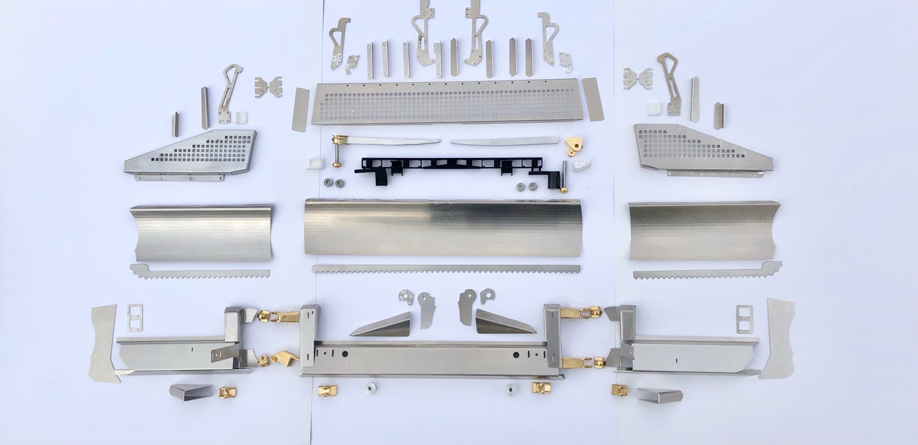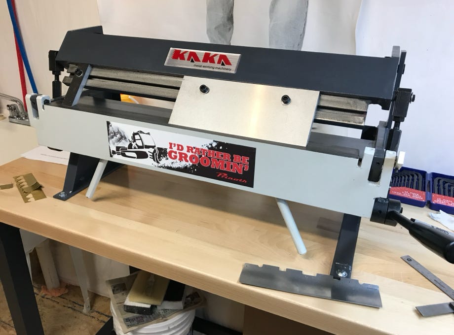 Zum Kanten der Teile schaffte ich eine Abkantbank an, und obwohl ich einige Übungsstücke machte, gingen trotzdem ein paar Teile daneben. Gut, dass ich mehr als einen Satz Laserteile bestellt hatte. Maßgenaues Kanten ist jedenfalls eine Wissenschaft für sich..