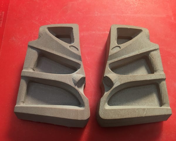 Beim Parkshapen wird das Cordmuster im Schnee oft beim Rückwärtsfahren mit dem Schild erzeugt (Backbladen), deshalb habe ich wie beim Original Rillenblöcke an der Gleitkufe angebracht. Dafür habe ich ein Urmodell hochdetailliert drucken lassen, und dann abgeformt und mit PU-Gussharz vervielfältigt.