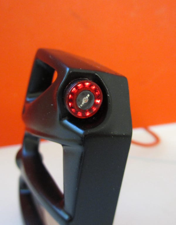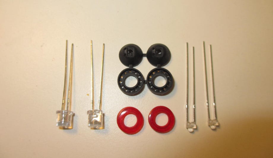 Eine Herausforderung waren die Kombirückleuchten, die beim Original aus einem Ring mit LEDs für das Rücklicht und dem Blinker im Zentrum bestehen. Die Gehäuseteile habe ich im CAD gezeichnet und dann drucken lassen, die Bohrungen im Ring simulieren dabei die LEDs vom Original, was recht gut wirkt, wie man im Bild oben erkennen kann. Als Rücklicht dient eine rote 1,8 mm LED, das Blinklicht besteht aus einer orange leuchtenden 5 mm LED, die ich passend plangeschliffen habe. Das rote Glas wurde ebenfalls gedruckt, in Silikon abgeformt und dann mit rot eingefärbtem transparentem Harz gegossen. Dieses Harz muss für 90 Minuten im Ofen bei 70°C ausgehärtet werden, also alles in allem recht aufwändig.
