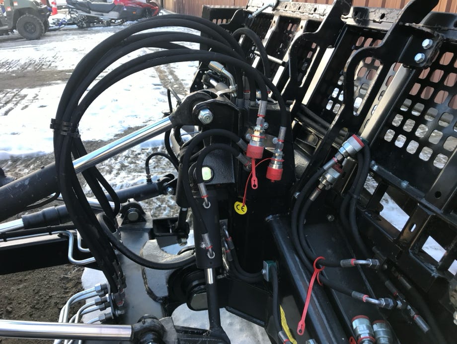 Mit den langen Hydraulikzylindern vorne und dem originalgetreuen Geräteträger hinten sind die beeindruckenden Verstellwege von Schild und Fräse der ParkPro-Version auch im Modell möglich:
