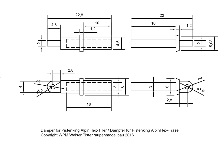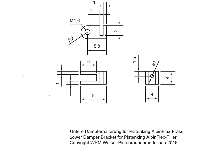 Zusätzlich benötigt werden 2 mm Silberstahlrundstangen für die Kolbenstangen, M1,6 Schrauben und Silikonlitze für die Hydraulikschläuche.