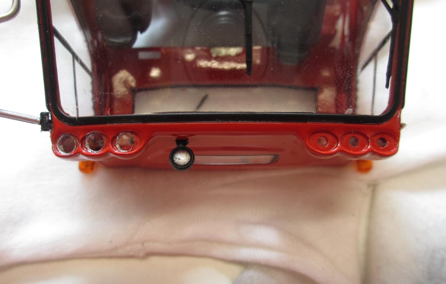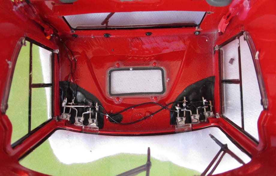 Finally the head light glasses were glued into place with a special clear hardening glue for plastic models.
