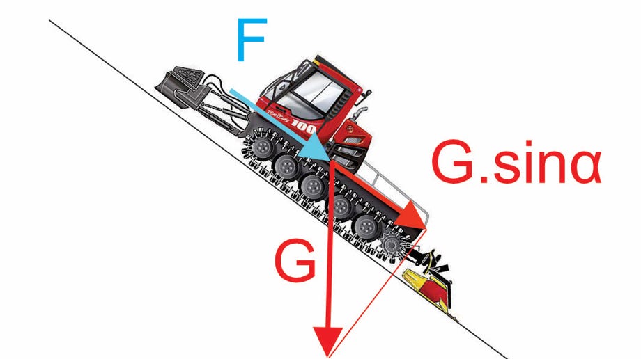 So schauen die Kräfte aus bei einer Pistenraupe in Hangfahrt bei gleichbleibender Geschwindigkeit: