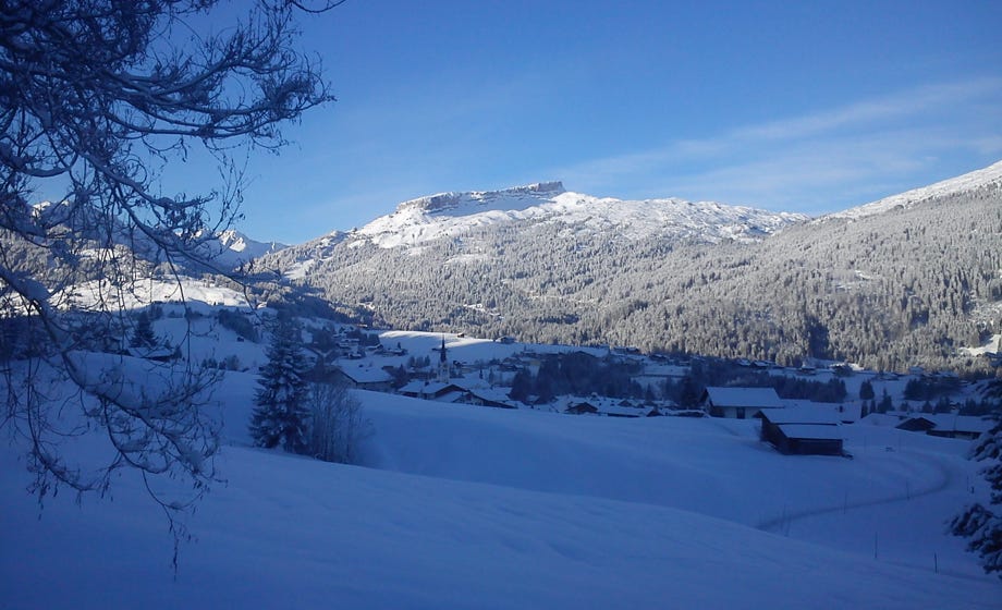 Unser Heimatort Riezlern mit dem markanten Bergmassiv Hoher Ifen im Kleinwalsertal, Österreich
