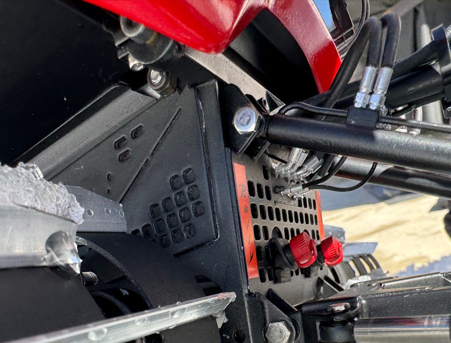 Der vordere Geräteträger kann mit Hydraulikschläuchen enorm aufgewertet werden.