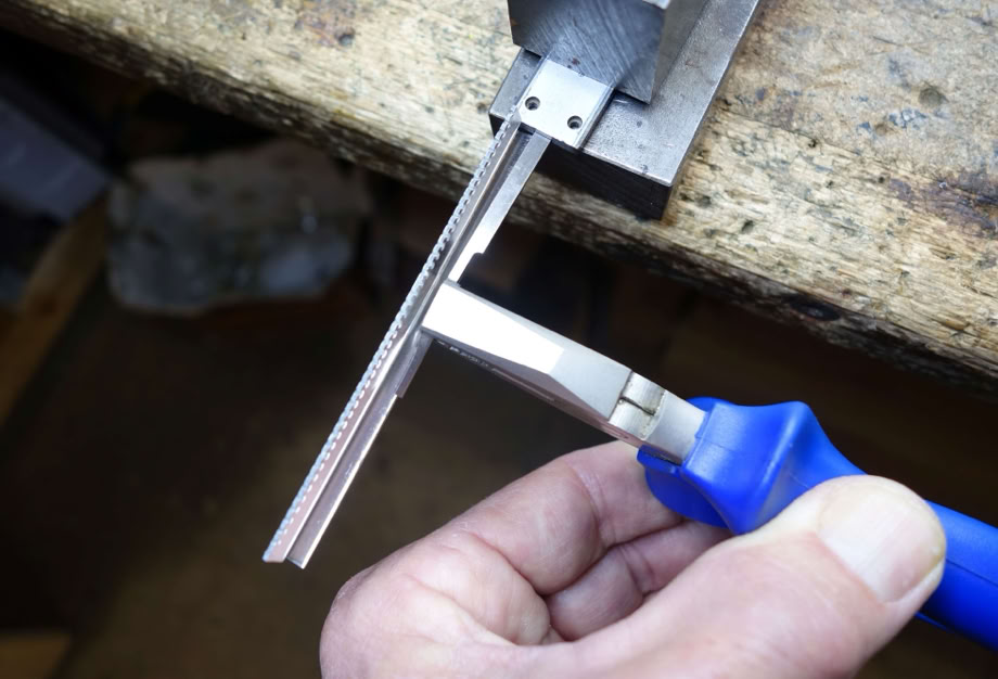 Das Abschrägen der Stege mach ich mit der Schere nach Augenmaß. Die Zahnung erleichtert die Sache erheblich