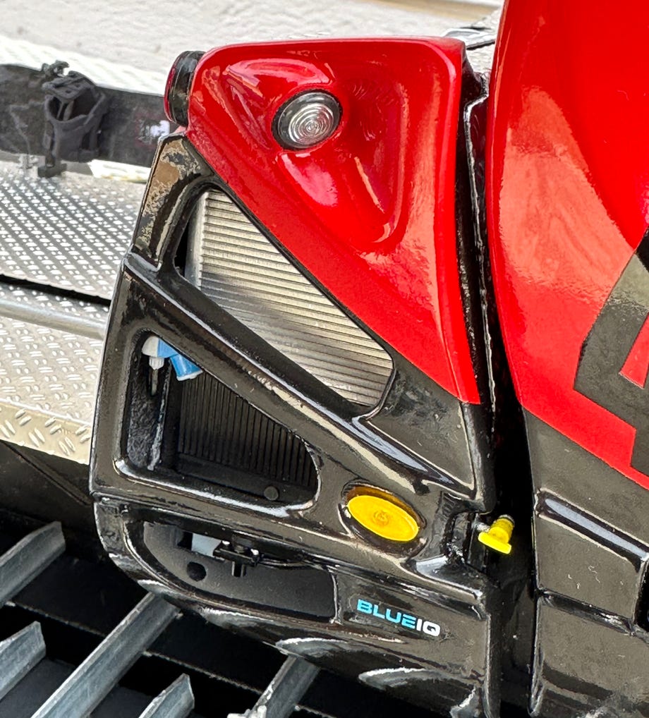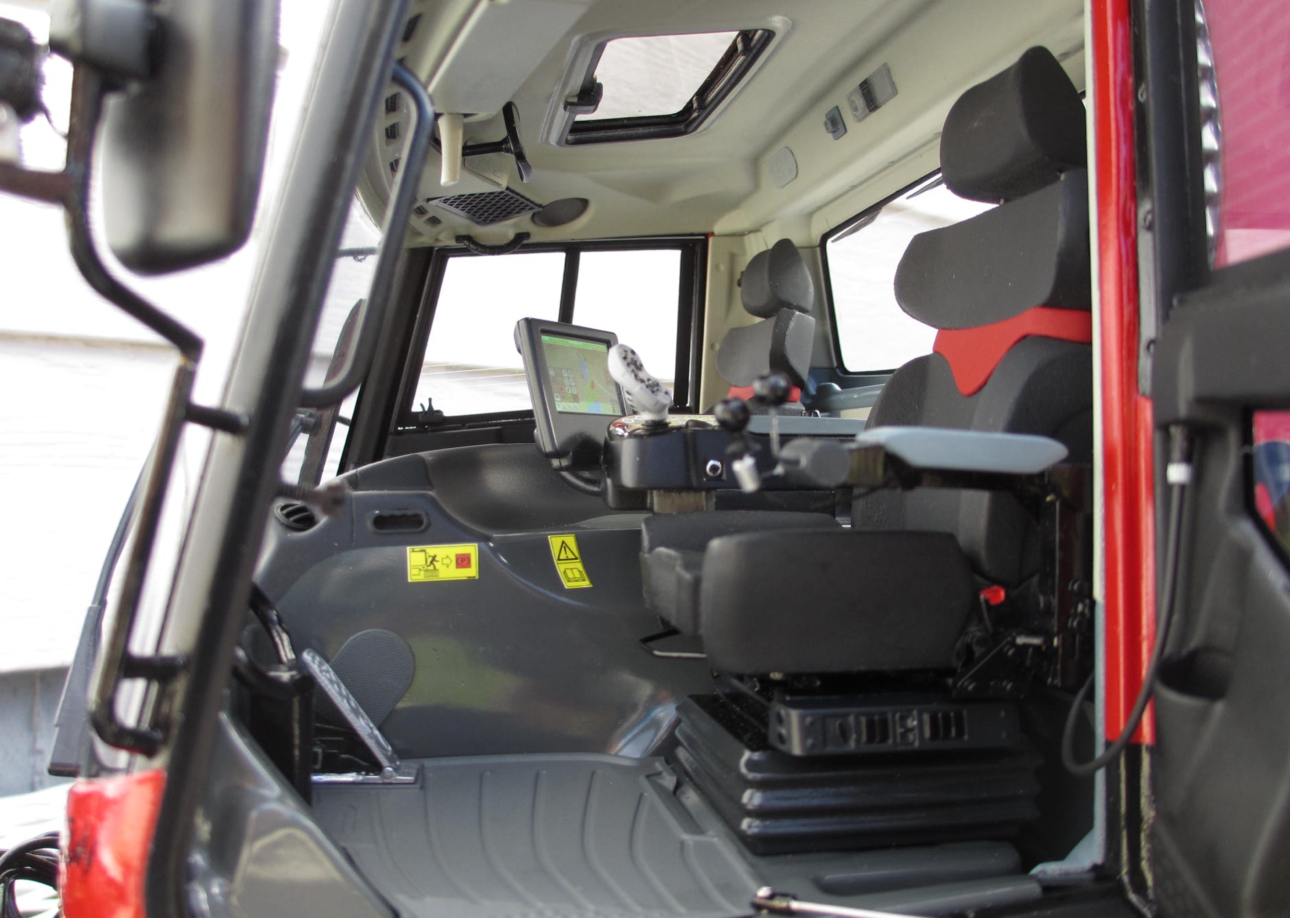 Damit war der Innenraum nun ebenfalls bis auf’s kleinste Detail originalgetrau nachgebildet. Als echten Hingucker wurde ein funktionsfähiger OLED-Bildschirm von Pistenking installiert, der nach dem Startlogo automatisch zwischen zwei Bildschirmansichten wechselt.