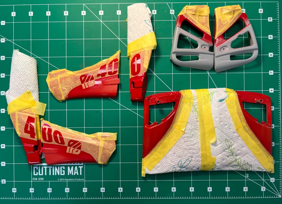 Anschließend kam dann das Verkleben der fertig lackierten Fahrerhausteile, was immer eine heikle Angelegenheit ist: