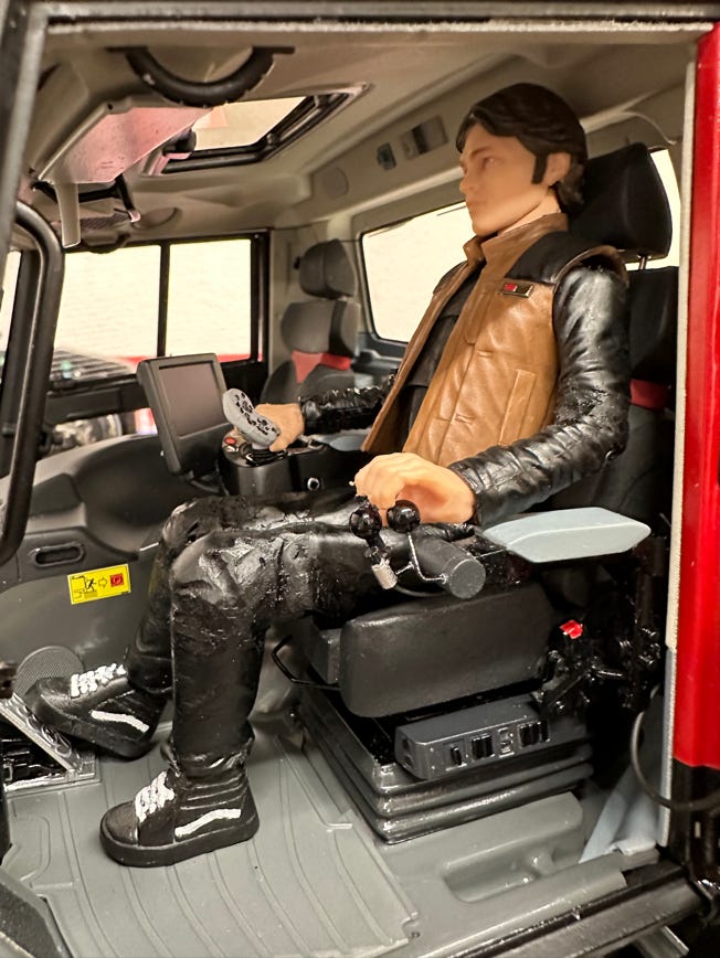 Natürlich braucht ein PistenBully auch einen Fahrer, in diesem Fall niemand geringerer als Han Solo in jungen Jahren, den ich wie schon beim PB100 aus einer Star Wars Action-Figur angepasst habe, und selbstverständlich mit den obligaten Vans MTE an den Füßen. Mehr dazu hier.