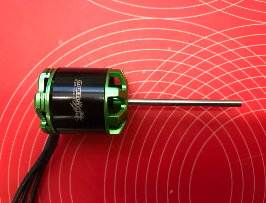 Für den Antrieb des Wurfrades und der Frästrommel habe ich einen relativ langsam laufenden und drehmomentstarken bürstenlosen Außenläufer gewählt. Dieser in den Bildern zu sehende Turnigy Motor ist inzwischen nicht mehr erhältlich. Ich habe die Druckteile im Januar 2021 auf einen ähnlichen Motor genau passend abgestimmt. Die Welle muss dabei durch einen längere Welle ersetzt werden, was bei den bürstenlosen Motoren glücklicherweise gut möglich ist. Zum Lösen der Madenschraube habe ich die Welle mit einem Lötkolben erhitzt, damit sich die Schraubensicherung löst. Nach Entfernen des Sprengringes konnte ich die Welle auf der Ständerbohrmaschine auspressen, dazu habe ich die Glocke auf dem Maschinenschraubstock aufgelegt und im Bohrfutter einen 3mm-Rundstab eingespannt, natürlich ohne die Bohrmaschine einzuschalten. Auf der Drehbank wurde dann bei der neuen 3 mm Edelstahlwelle hinten eine Nut für den Sprengring eingestochen. Außerdem habe ich für die Madenschraube am Motor und am Ritzel entsprechende Flachstellen in die Welle gefräst. Anschließend habe ich den Motor und die Druckteile verschraubt, das Wurfrad wird mit den Senkkkopfschrauben, die beim Motor mitgeliefert werden, verschraubt (siehe Fotos).