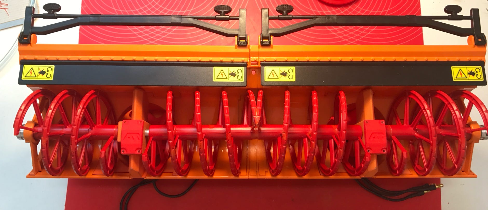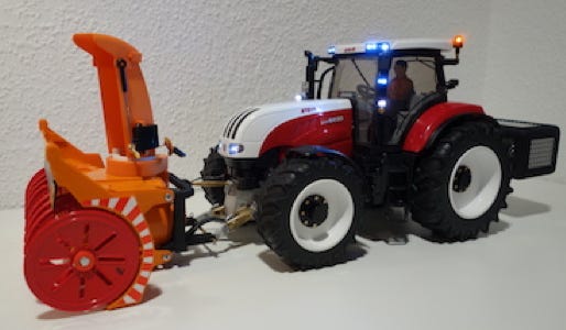 Die Firma Bruder brachte 2016 eine Schneeschleuder auf den Markt (Artikel Nr 02349), welche zwar ein reines Spielzeug und absolut nicht funktionsfähig ist, aber eine preiswerte Basis für einen Umbau darstellt und im Endeffekt eine optische ansprechende Schneeschleuder ergibt.