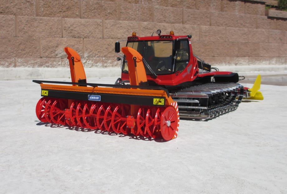 Das ist die einfachere Variante, es werden zwei identische Schneeschleudern gebaut, jeweils mit Endscheiben an beiden Seiten, die beide komplett unabhängig voneinader funktionieren. Über den Montagerahmen werden sie nebeneinander positioniert.