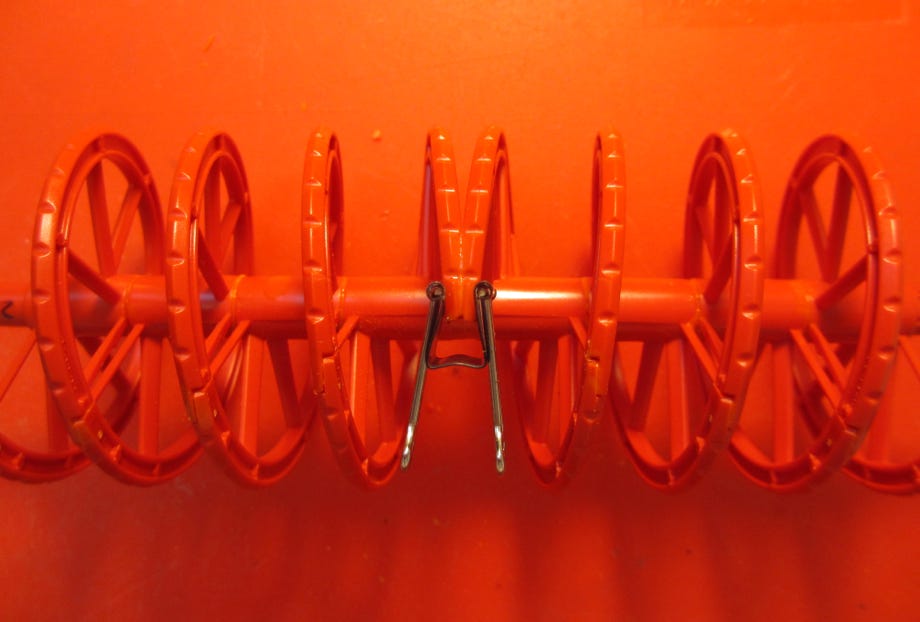 Für die Mitteltrommel werden zwei zusätzliche Schneckenwendel benötigt, deshalb wird nämlich eine 3. Bruderschleuder benötigt. Im Bild rechts ist zu erkennen, wie das fertig ausschaut.