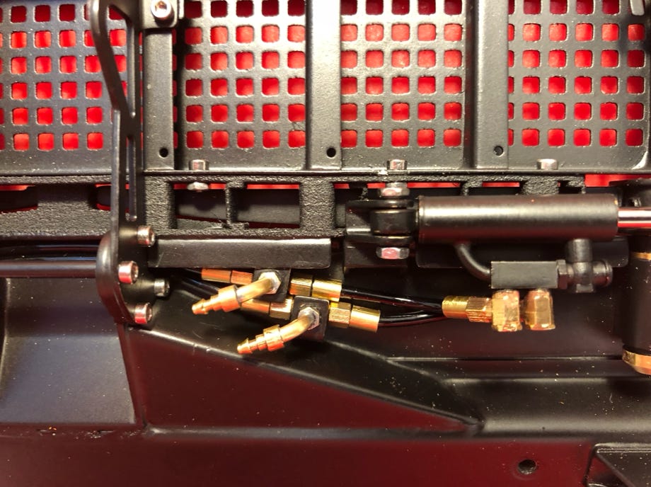 Auch hier habe ich jedes Detail so gut es ging umgesetzt, man beachte z.B. die Schlauchführung für den oberen Zylinder.
