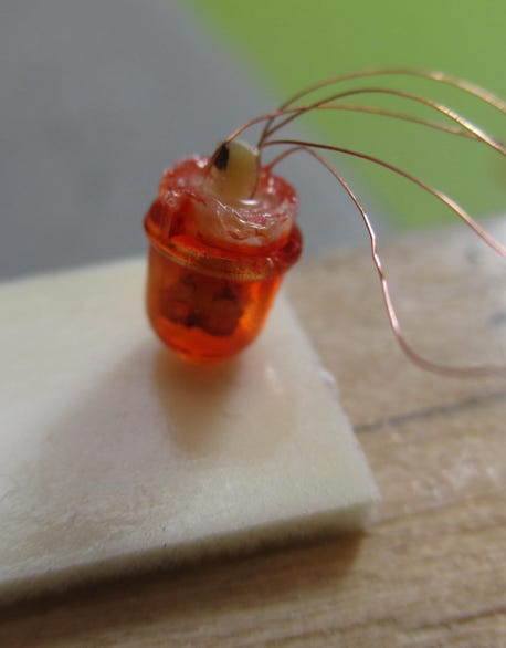 Finally the head light glasses were glued into place with a special clear hardening glue for plastic models.
