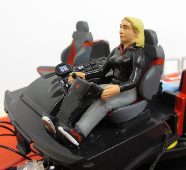 A few amputations were necessary to fit the Siku driver figure into the snow cat. In addition she was re-painted, and of course she is also wearing VANS Sk8-High shoes like all of our snow cat drivers.