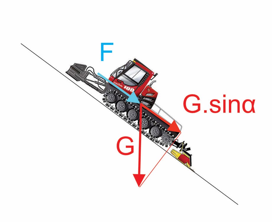 G = weight of the snow cat, acts downwards