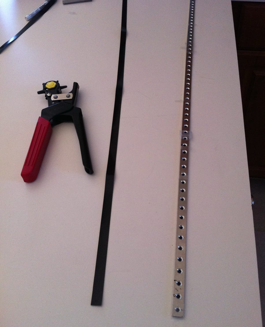 Für das Lochen der Bänder haben wir uns eine Schablone auf der CNC-Fräse angefertigt, damit geht das Lochen ruckzuck und super genau.