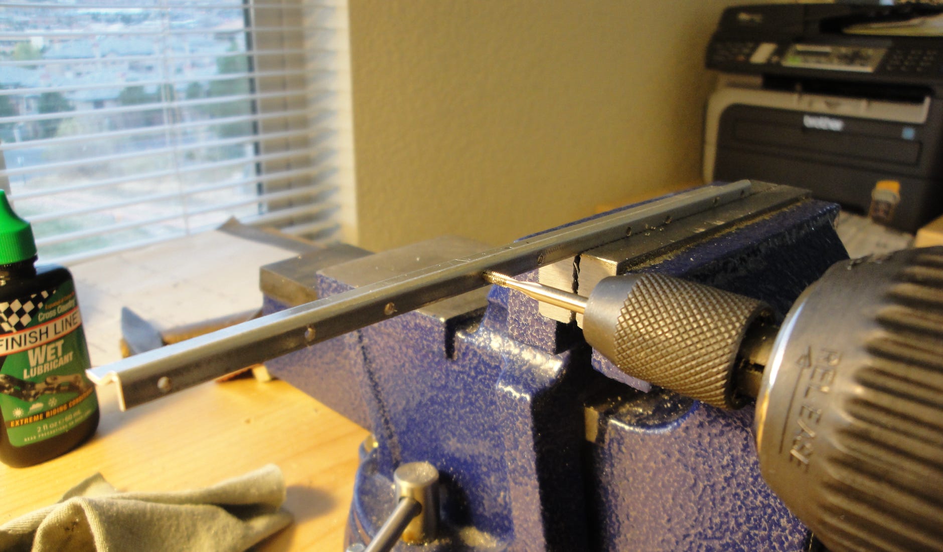 Schneiden der Gewinde mit dem Akkuschrauber, dabei immer ein kleines Tröpfchen (Schneid)Öl verwenden: