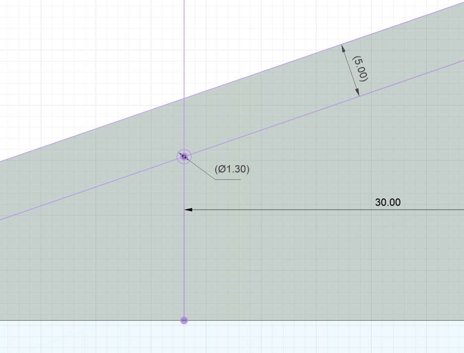 Die Schnellwechsel-Anschlüsse zu den Ohrenzylindern waren auf dem Shapeways-Shop von AT-modellbau originalgetreu als Messing-Druckteil verfügbar. Vorne sind die Anschlüsse an den Ohrenzylinder, die entlang der roten Linien abgetrennt werden. Ebenso wird das Teil mittig getrennt. Damit das Schild demontierbar bleibt, werden diese Teile jeweils mit einer M1,6 Schraube am Schnellwechselrahmen befestigt. Die genaue Position für die Bohrung ist in der Zeichnung unten zu sehen, die 30 mm sind ab der Außenkante des mittleren Turms, die 5 mm ab der Oberkante.