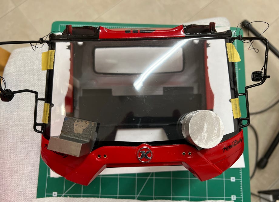 Anschließend kam dann das Verkleben der fertig lackierten Fahrerhausteile, was immer eine heikle Angelegenheit ist: