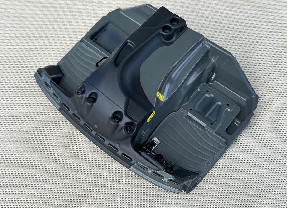 Die Bodengruppe ist beim Original im unteren Bereich in glänzend Anthrazitgrau lackiert, und die Abdeckung vom Mitteltunnel mit schwarzem Kunstleder überzogen. Das wurde natürlich auch beim Modell berücksichtigt. Zudem ritzte ich vorne noch die Trennlinie hinter den Lüfterdüsen ein, und ich setzte auch detaillierte Lüfterdüsen ein, die ich vom PB100 noch zur Verfügung hatte.