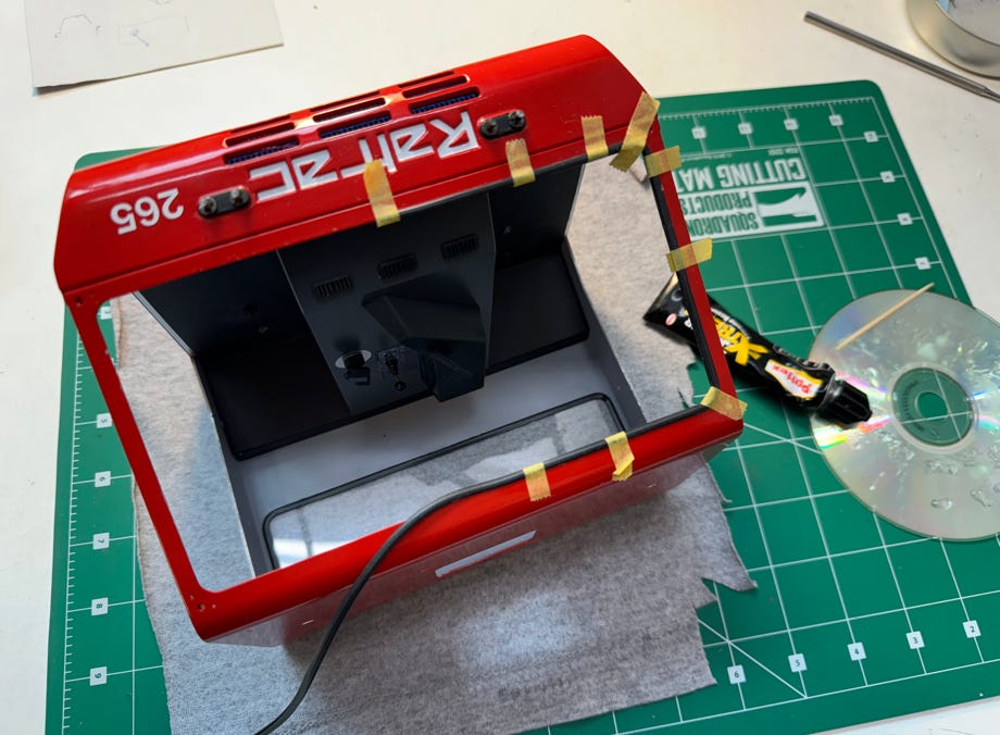 Die Sitze habe ich so wie beim Original-Ratrac lackiert. Für die Armaturenbretter ließ ich Nass-Schiebebilder drucken, das war dann mein Beitrag zu diesem Bausatz.