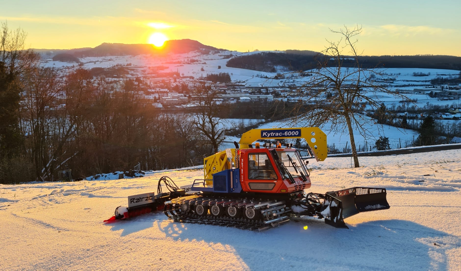 Im April gibt es einigen Schneefall hier, allerdings ist es meistens zu warm für eine Ausfahrt. Aber für Fotos der (fast) fertigen Raupe im Schnee hat es gereicht: